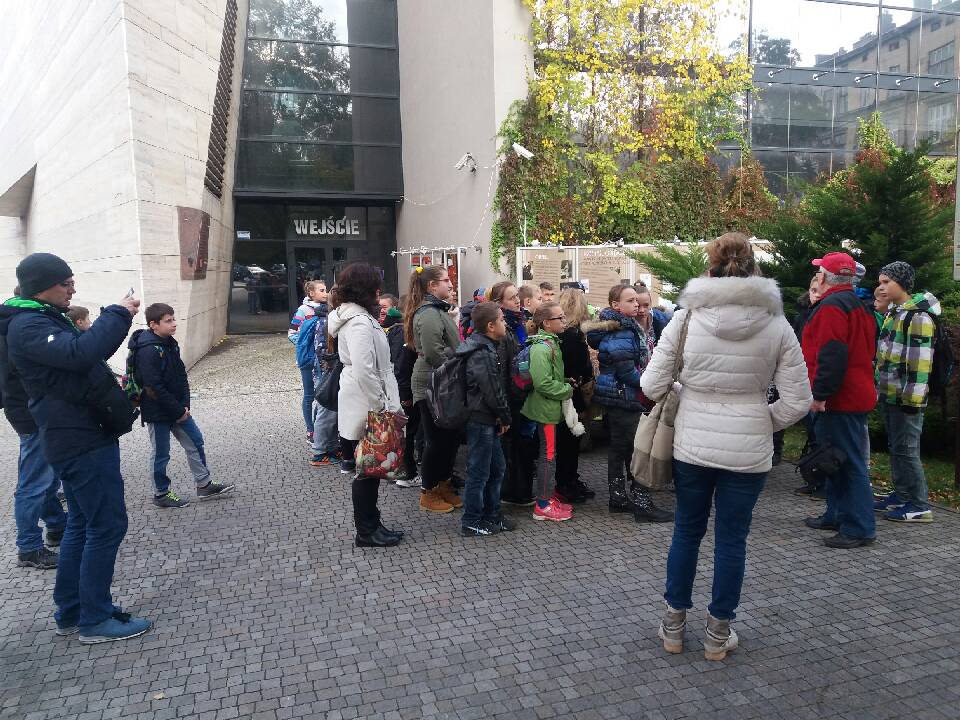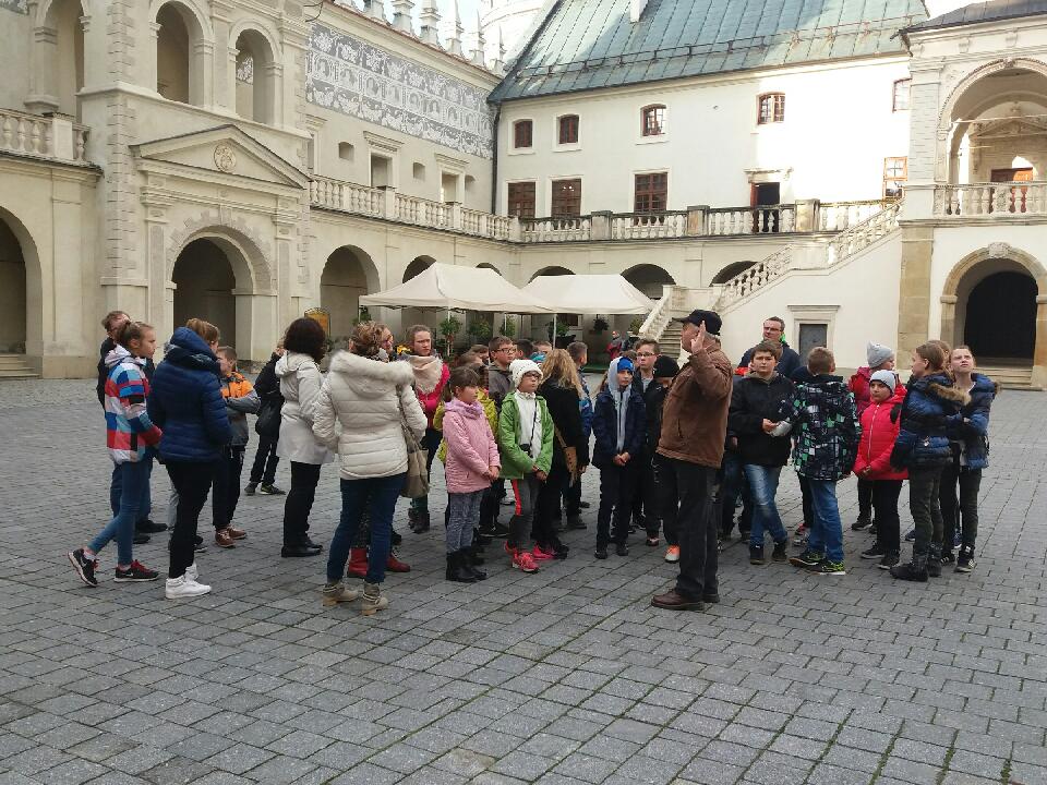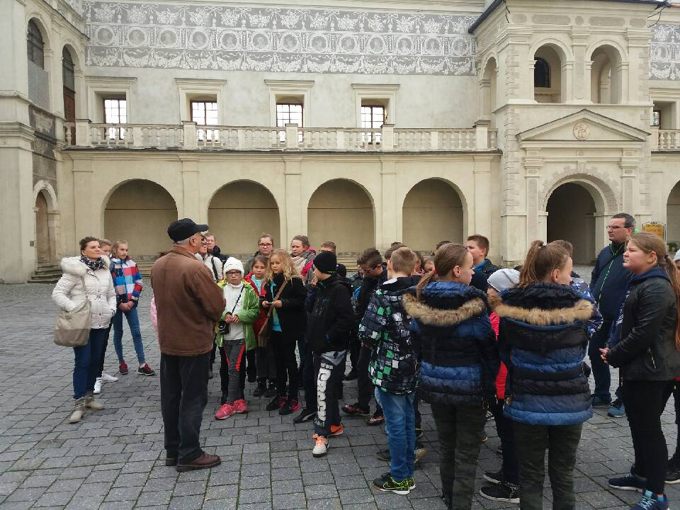 Dnia 19 października 2016R. wyruszyliśmy na wycieczkę do Przemyśla- Krasiczyna. Gdy po godzinnej podróży wysiedliśmy na przemyskim rynku czekał już na nas pan przewodnik. Oprowadzał nas po najciekawszych zabytkach tego jednego z najstarszych miast w Polsce i pokrótce próbował nam przekazać jego historię. Zaciekawiły nas zwłaszcza podziemne krypty w Archikatedrze, w których znajdują się groby biskupów oraz liczne relikwie. Kiedy już każdy zrobił zdjęcie z Wojakiem Szwejkiem i nakarmił gołębie, poszliśmy zwiedzać muzeum dzwonów i fajek. Podziwialiśmy również piękny Przemyśl z wieży widokowej. Każdy jednak z niecierpliwością pytał o główny punkt programu -tor saneczkowy.