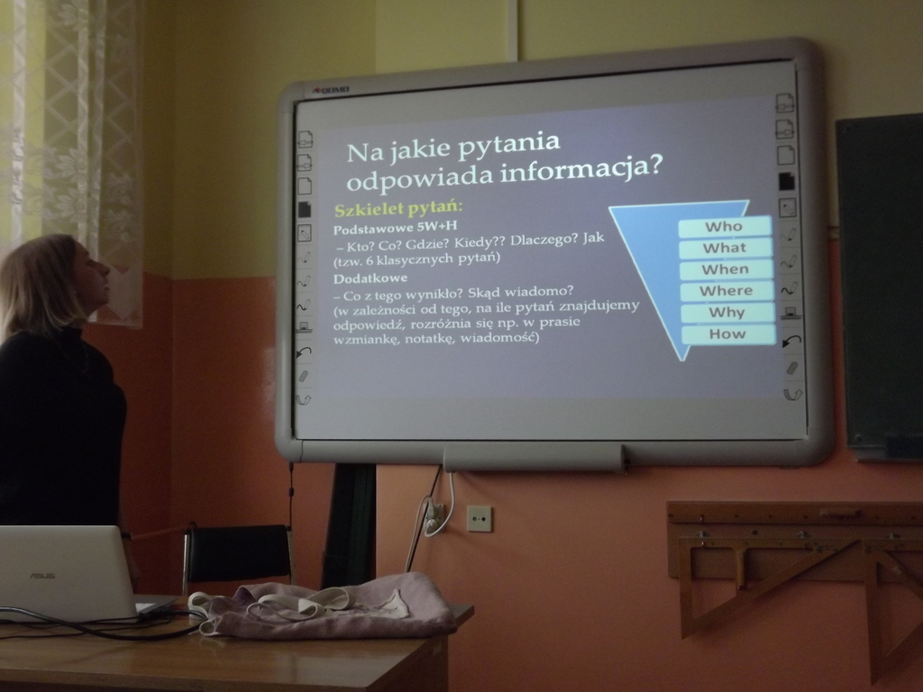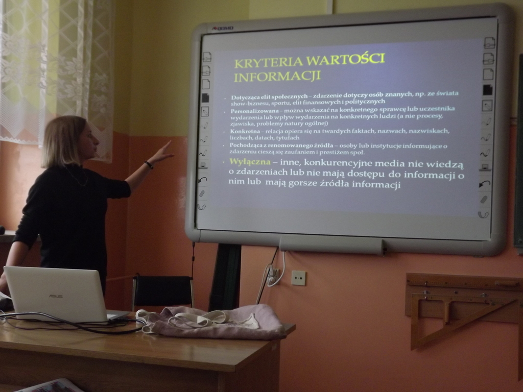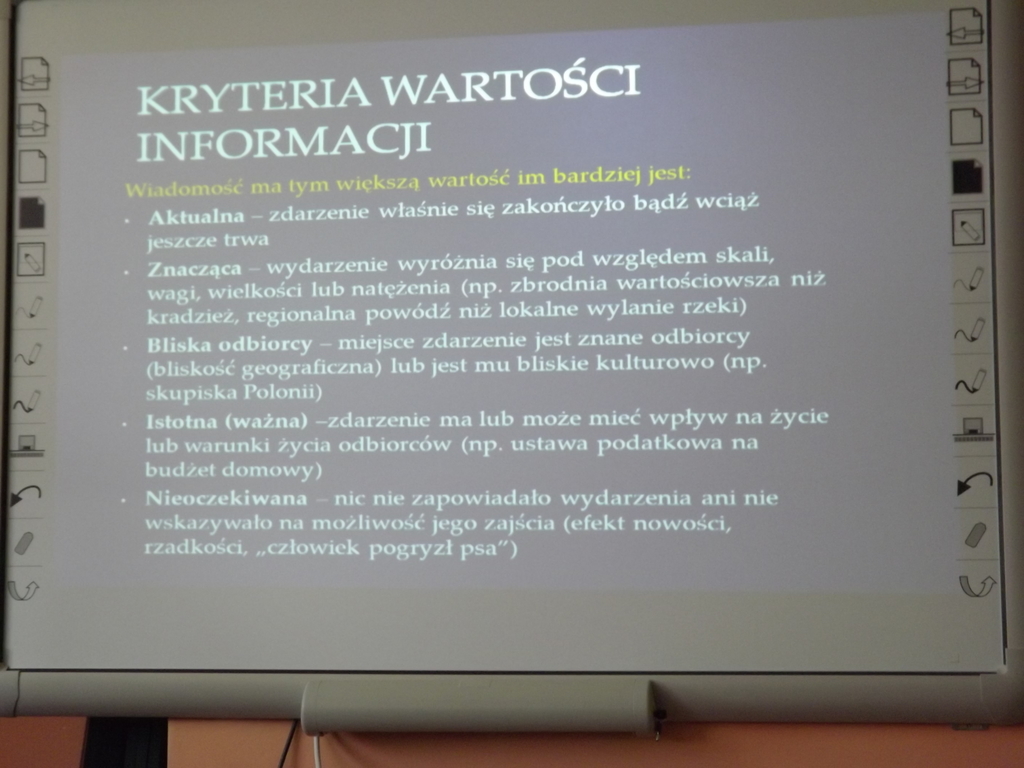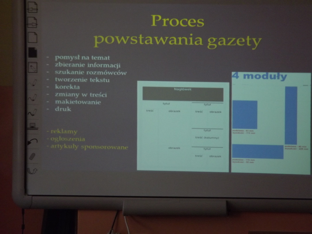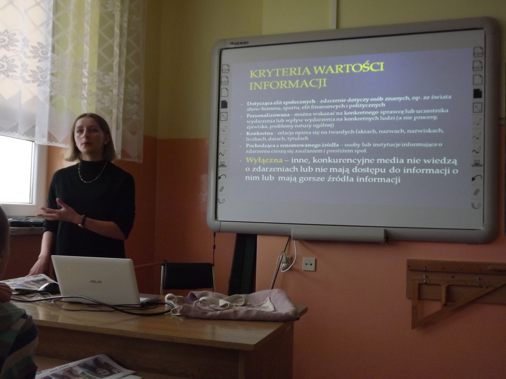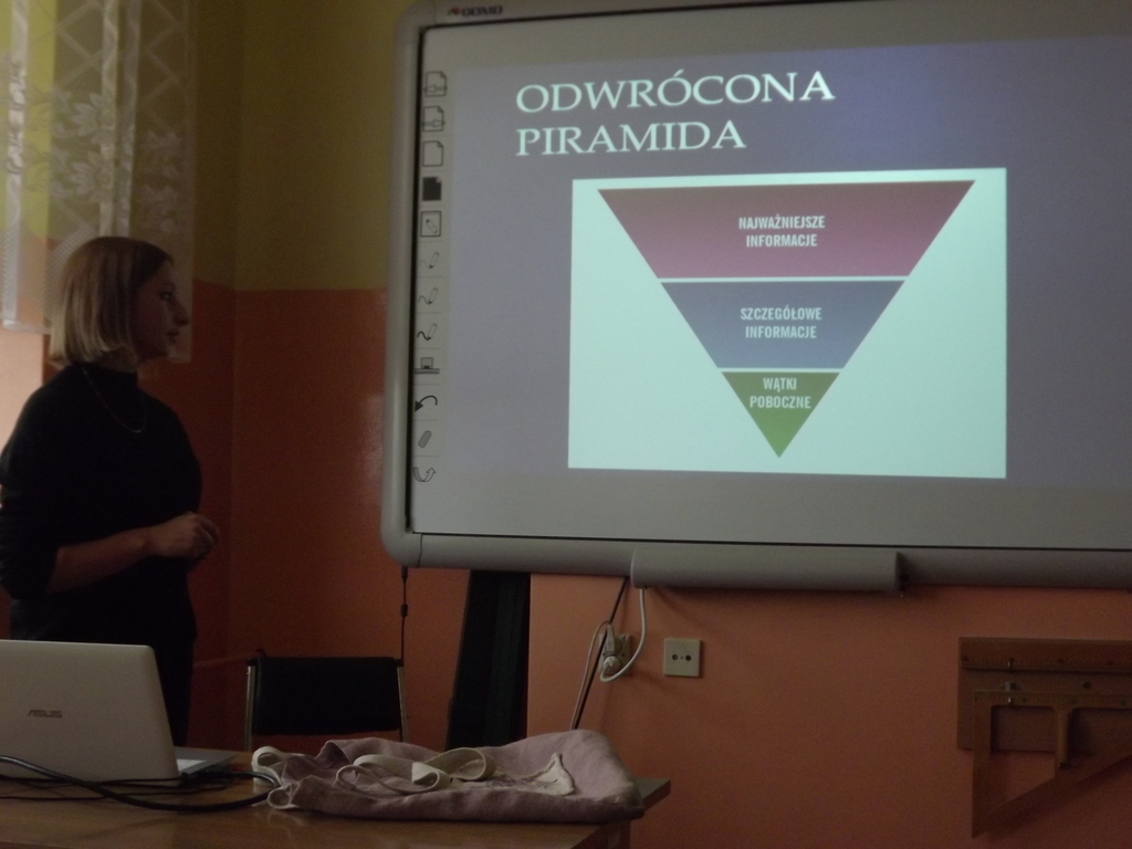 W środę 16 listopada w Zespole Szkół odbyło się spotkanie z panią Barbarą Chmurą-dziennikarką „Życia Podkarpackiego”. Uczniowie klas gimnazjalnych oraz kl. szóstej uzyskali wiele interesujących informacji na temat pracy dziennikarza oraz sposobu przygotowania artykułów prasowych. Słuchacze dowiedzieli się jak wygląda tydzień dziennikarza, poznali proces powstawania gazety, zapoznali się z podziałem mediów i prasy. Usłyszeli również o tym, jakie są kryteria wartości informacji oraz na jakie pytania ona odpowiada. Pani  dziennikarka w sposób łatwy i przystępny przybliżyła młodzieży zawód, który wymaga dyspozycyjności, bezstronności i odpowiedzialności za słowo, a jednocześnie daje możliwość informowania i pomagania. Ponadto umożliwia poznawanie wielu nowych ludzi, co jest bardzo ważne w profesji dziennikarskiej. Mamy nadzieję, że to spotkanie znacznie ubogaciło wiedzę dotyczącą  zawodu dziennikarza. A może niektórzy zainspirowani wizytą pani redaktor pójdą w przyszłości w jej ślady?.                                                                                                          Bernardetta Wollek