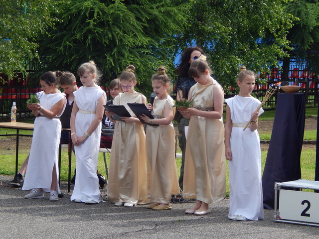 W dzień „Kolorowej SPARTAKIADY” przeżyliśmy wiele sportowych emocji. A skoro, jak wszyscy wiemy, początek igrzyskom olimpijskim dała starożytna Grecja, to naszą uroczystość zaszczycili „goście ze starożytnej Grecji”. Greczynki zapaliły znicz olimpijski, by nasze igrzyska sportowe odbywały się zgodnie z honorem i uczciwie. Następnie złożyliśmy przysięgę gry fair play, czyli gry bez oszukiwania, gry gdzie zwycięstwo nie jest celem, który należy osiągnąć za wszelką cenę. Przez cały czas trwania naszej imprezy liczyła się przede wszystkim dobra zabawa. I tak była