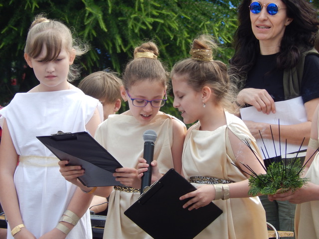 Dzień Dziecka odbywał się pod tytułem: „Kolorowa SPARTAKIADA”. Dlaczego „Kolorowa Spartakiada”? Bo były zabawy kolorami oraz tak, jak w starożytnej Sparcie miała miejsce sportowe zawody. A skoro zawody, to też: rywalizacja, pokaz odwagi, siły, honoru i walki fair play. Wszyscy przypomnieliśmy sobie czym są zasady fair play, dlatego podczas zabaw i zawodów: