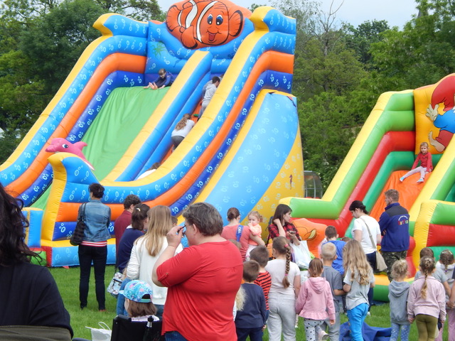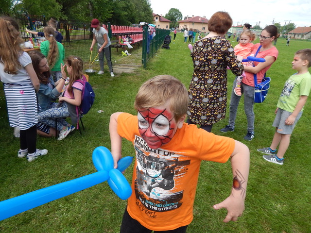 Klasy młodsze malowały twarze, zjeżdżały na dmuchanych zjeżdżalniach, kreatywne balony w rękach dzieci przybierały najróżniejsze kształty, najmłodsi spędzali czas na chowaniu się w namiotach, puszczaniu baniek mydlanych i kreatywnych zabawach przy użyciu skakanek, gum do skakania, Hula Hop… itp. Pyszny i obfity poczęstunek przygotowali rodzice. Było więc smacznie i do syta