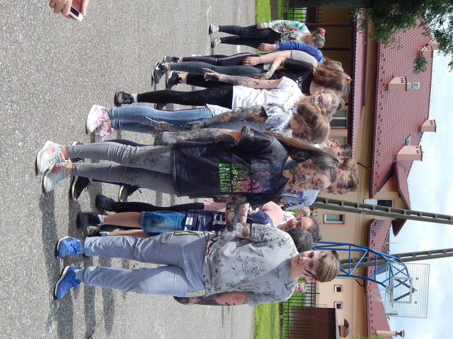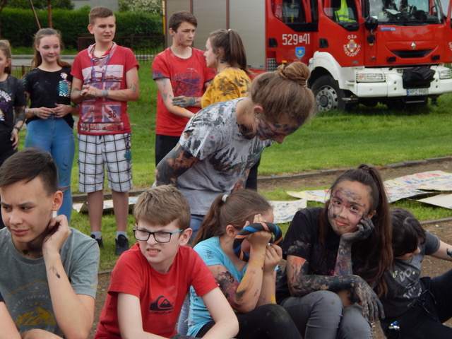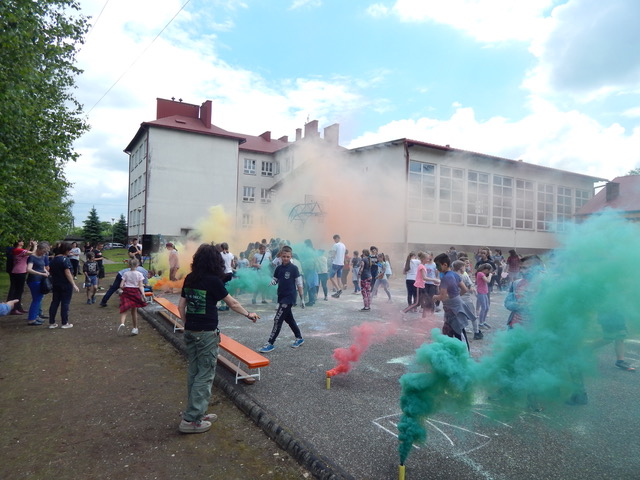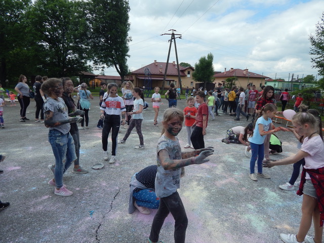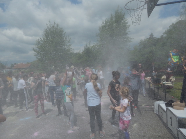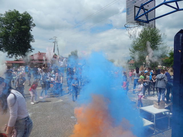 Kolejnym punktem programu była „walka na kolory”. Kolorowe proszki i race z kolorami zrobiły wspaniałe wrażenie. Wszyscy uśmiechnięci, pomalowani i szczęśliwi odtańczyli spontaniczny taniec: „Belgijkę”.