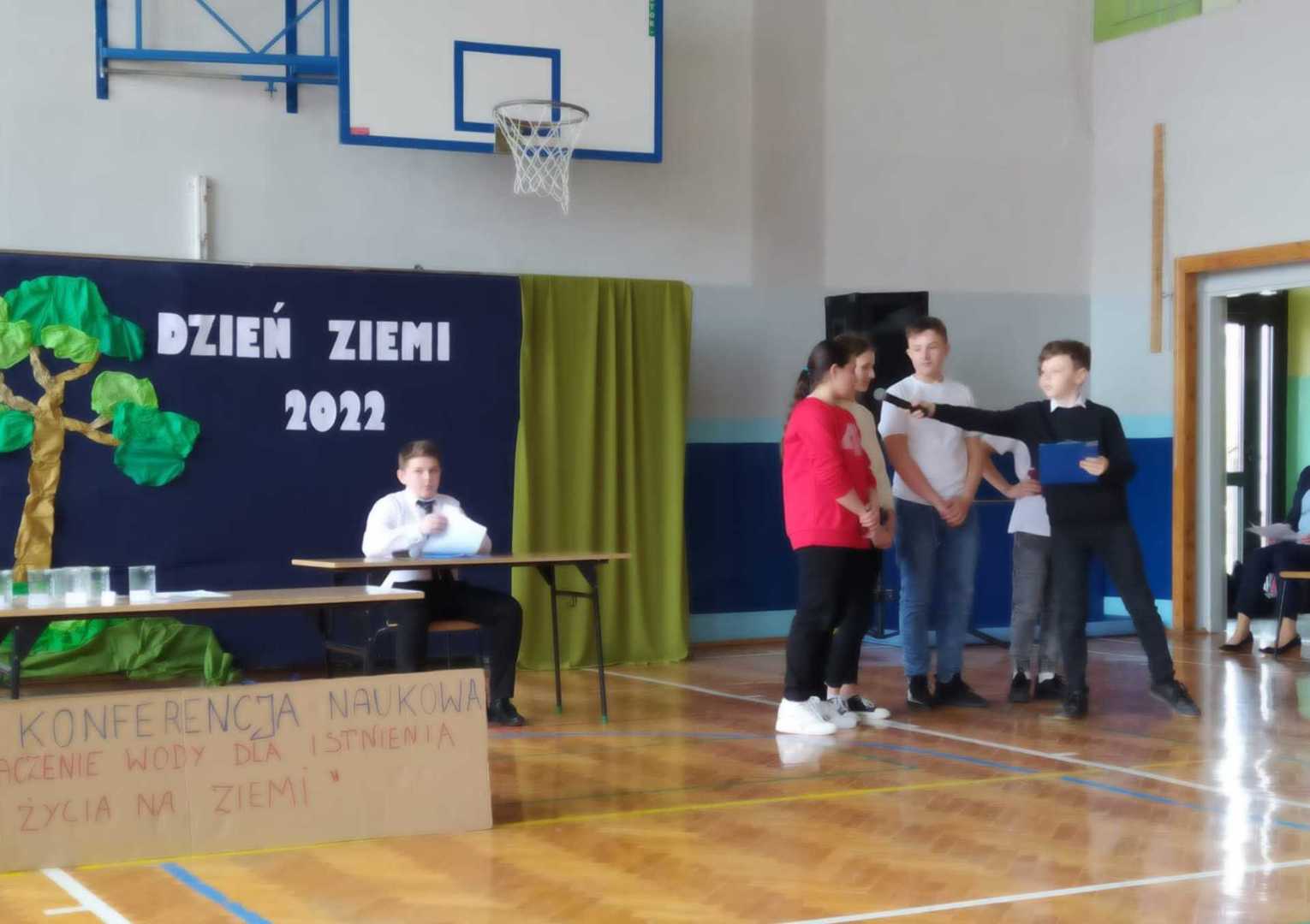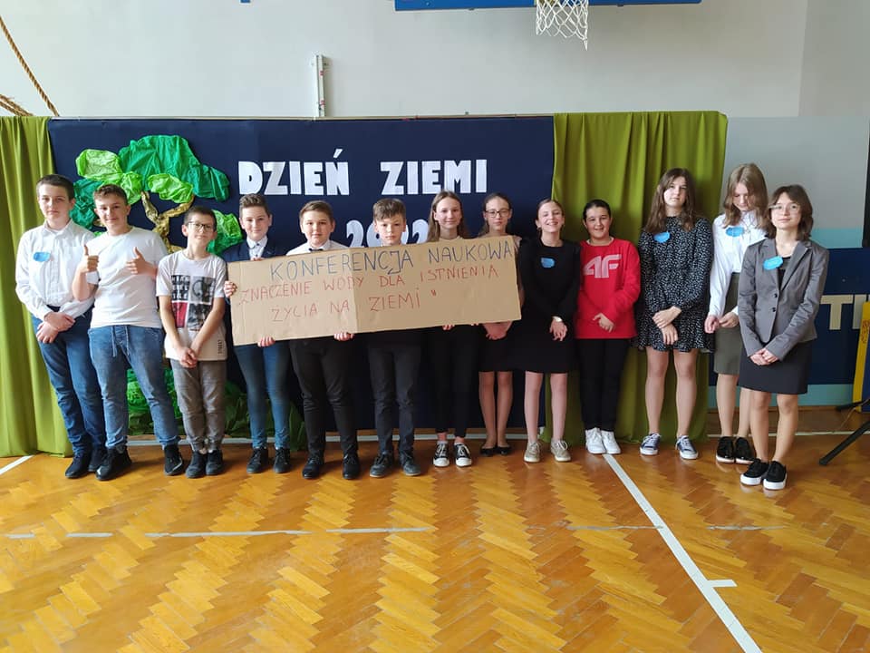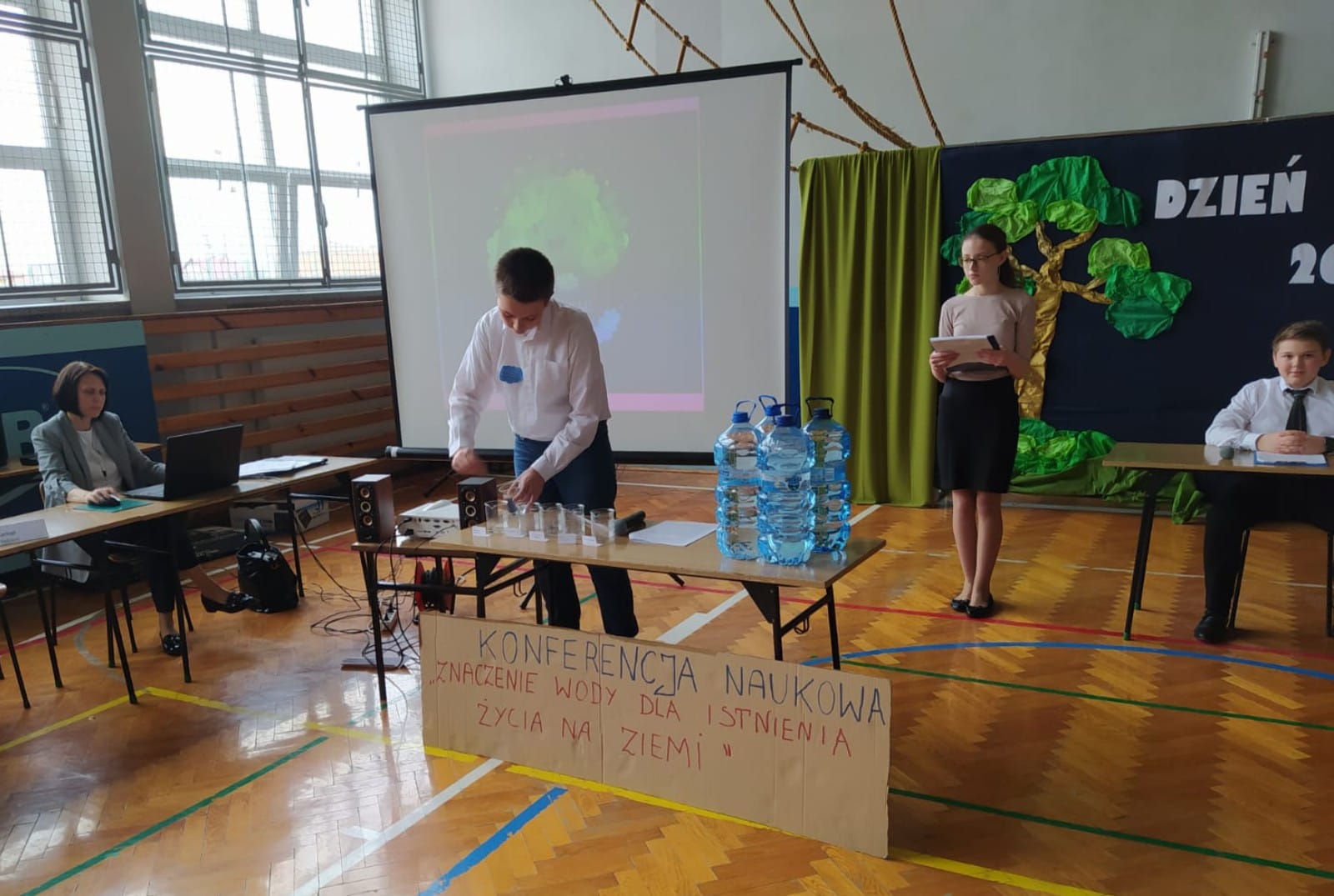 W dniu 27 kwietnia 2022r. w naszej szkole odbył się apel z okazji Światowego Dnia Ziemi oraz obchodzonego niedawno na całym świecie Dnia Wody. Celem apelu było poszerzanie wiedzy na temat środowiska przyrodniczego i jego ochrony, zwrócenie uwagi na zagrożenia dla naszej planety oraz kształtowanie postaw proekologicznych. Uczniowie klasy VIb wcielili się w ekspertów różnych dziedzin nauki i przypomnieli właściwości chyba najważniejszej w przyrodzie substancji – wody.