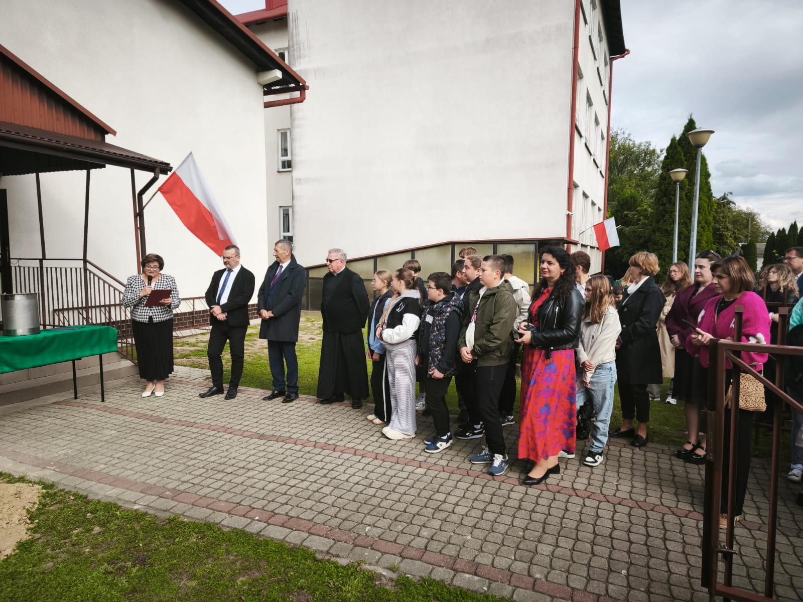 Po symbolicznym przecięciu wstęgi i przemówieniach członków rodziny Jana Gołdasza odbył się przemarsz do Szkoły Podstawowej im. św. Antoniego z Padwy, gdzie zakopano przy kapliczce Patrona Szkoły Kapsułę Czasu. Podczas tej części wydarzenia głos zabrał dyrektor naszej szkoły – pan Dariusz Stącel, sołtys wsi Urzejowice - pan Stanisław Pieniążek oraz prezes Stowarzyszenia "Urzejowice" - pani Jadwiga Orzechowska.