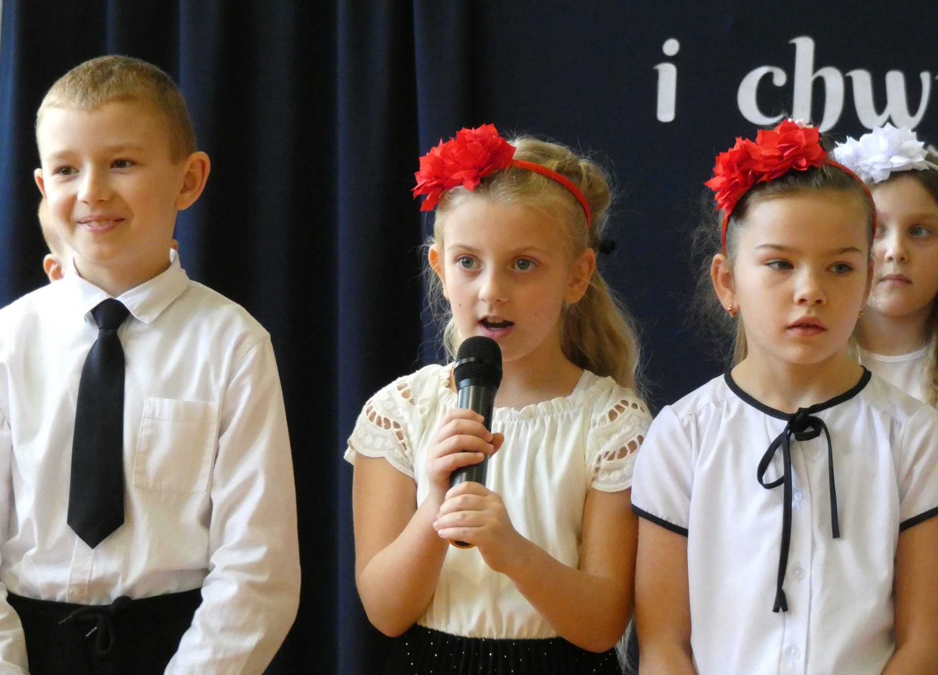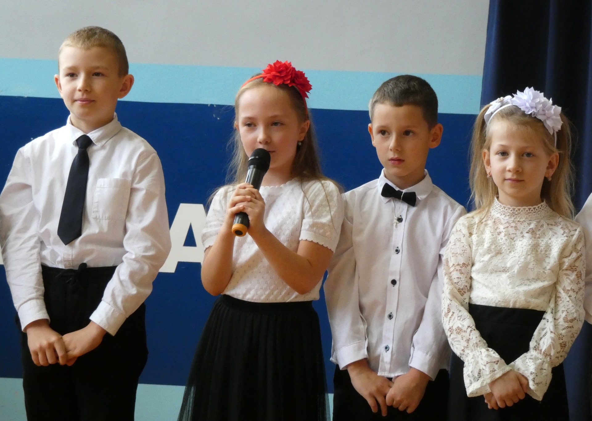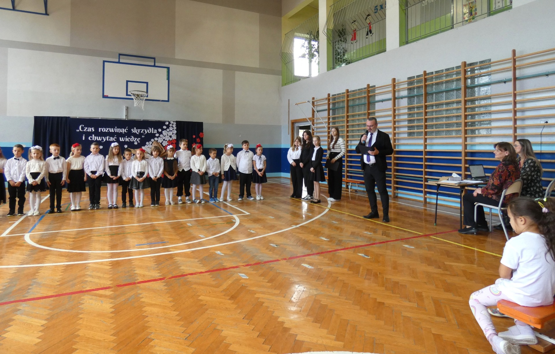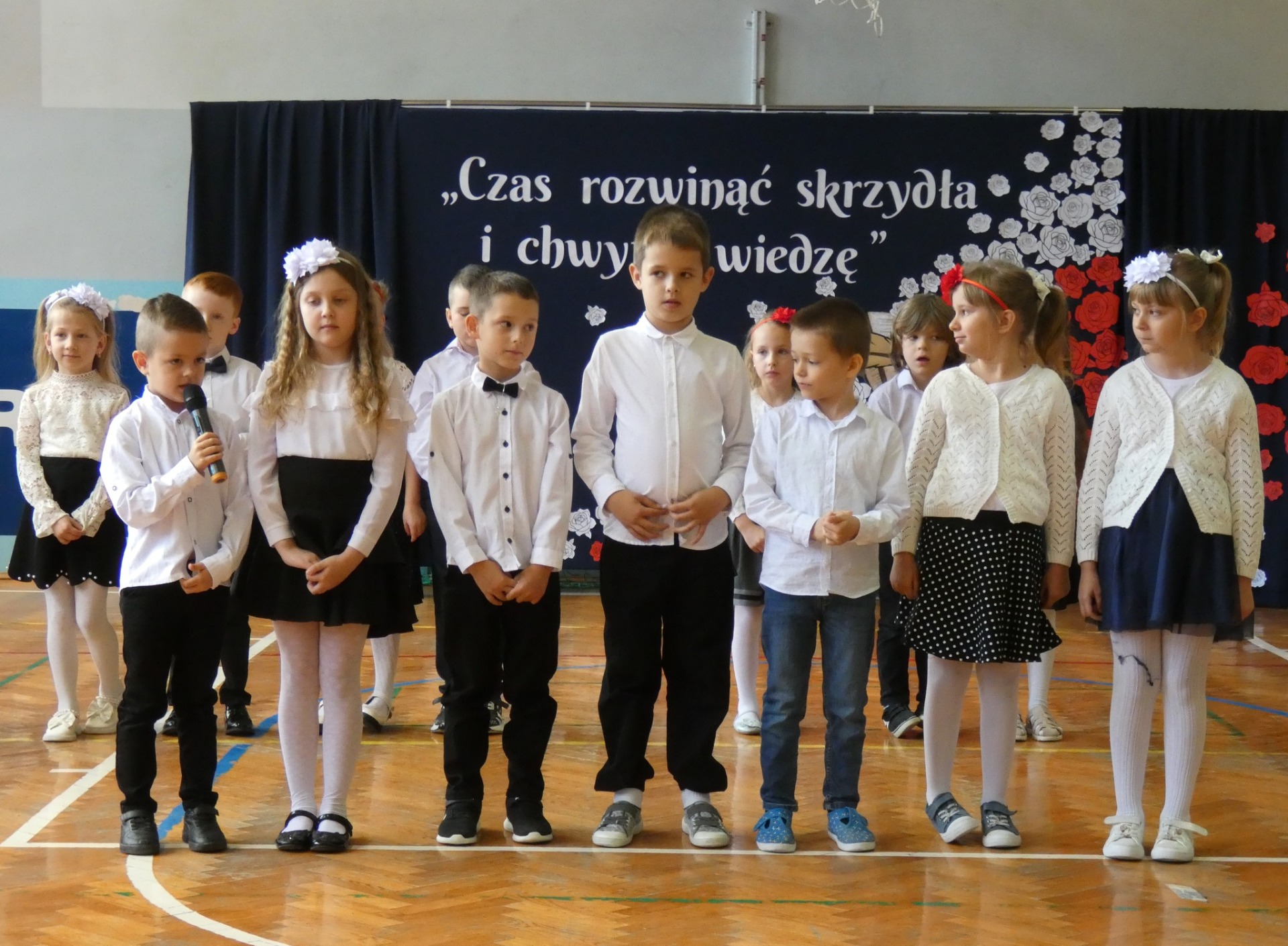 Pierwszoklasiści zaprezentowali piękne wiersze i z dumą złożyli ślubowanie w obecności sztandaru szkoły. Uroczystość uświetniło wspólne odśpiewanie hymnu państwowego