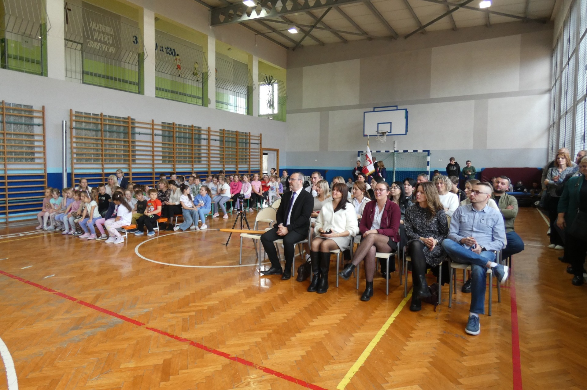 Wśród publiczności nie zabrakło uczniów klas młodszych oraz rodziców pierwszaków, którzy z dumą obserwowali ten ważny moment.