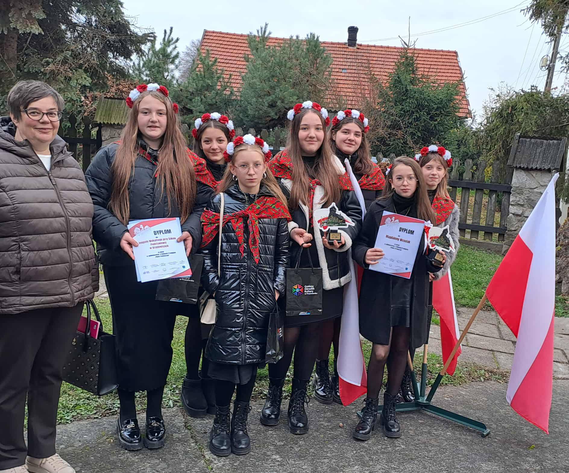 Dziś w Nowosielcach odbył się 𝙓 𝙂𝙢𝙞𝙣𝙣𝙮 𝙋𝙧𝙯𝙚𝙜𝙡𝙖̨𝙙 𝙋𝙞𝙚𝙨́𝙣𝙞 𝙋𝙖𝙩𝙧𝙞𝙤𝙩𝙮𝙘𝙯𝙣𝙮𝙘𝙝. W tym roku zgromadził on rekordową liczbę uczestników - aż 140! Naszą szkołę reprezentowały uczennice klasy V: 𝙈𝙖𝙜𝙙𝙖𝙡𝙚𝙣𝙖 𝙒𝙚𝙨𝙚𝙡𝙖𝙠 z pieśnią " Wolność" oraz 𝙉𝙖𝙩𝙖𝙡𝙞𝙖 𝙆𝙤𝙠𝙤𝙨𝙯𝙠𝙖, 𝙕𝙪𝙯𝙖𝙣𝙣𝙖 𝙆𝙚̨𝙙𝙯𝙞𝙤𝙧𝙖, 𝙇𝙚𝙣𝙖 𝘿𝙧𝙖𝙗𝙞𝙠, 𝙈𝙖𝙟𝙖 𝙈𝙖𝙡𝙞𝙣𝙤𝙬𝙨𝙠𝙖, 𝙆𝙞𝙣𝙜𝙖 𝙇𝙖𝙨𝙚𝙠, 𝙉𝙖𝙙𝙞𝙖 𝙒𝙤𝙟𝙩𝙖𝙨 z pieśnią "Przytulmy Polskę do serca". Uczennice przygotowała pani 𝙈𝙖ł𝙜𝙤𝙧𝙯𝙖𝙩𝙖 𝙎́𝙡𝙞𝙬𝙖. Gratulujemy wspaniałego występu!